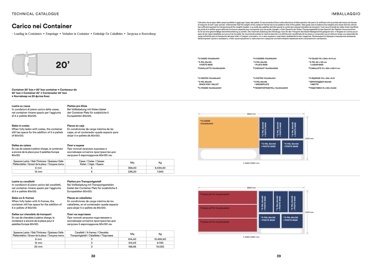 Calcolare che al peso delle casse/cavalletti si aggiunge il peso dei pallets. Si raccomanda di fare molta attenzione al bilanciamento dei pesi e di verificare che la portata del mezzo sia idonea