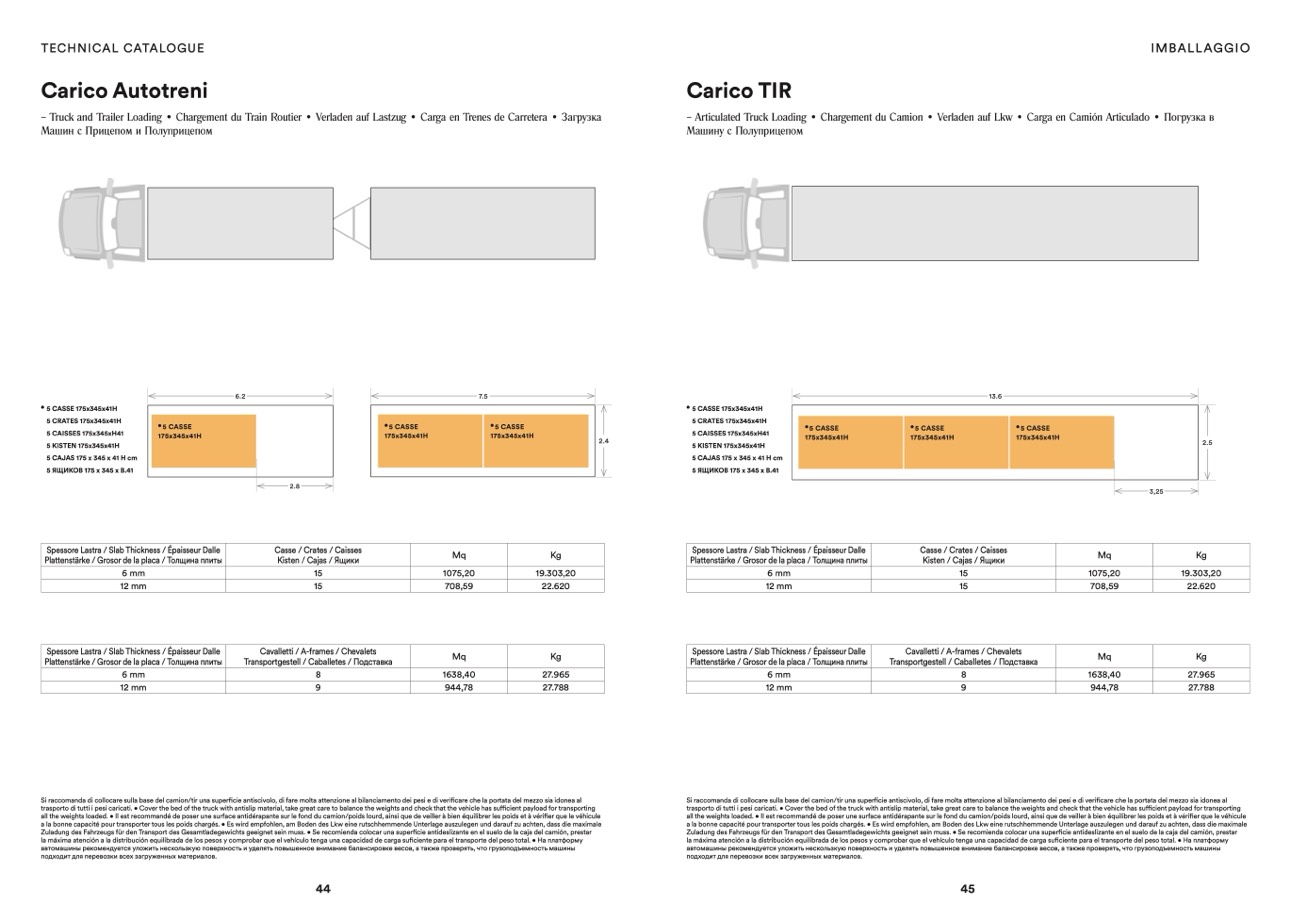 Si raccomanda di collocare sulla base del camion/tir una superficie antiscivolo, di fare molta attenzione al bilanciamento dei pesi e di verificare che la portata del mezzo sia idonea al