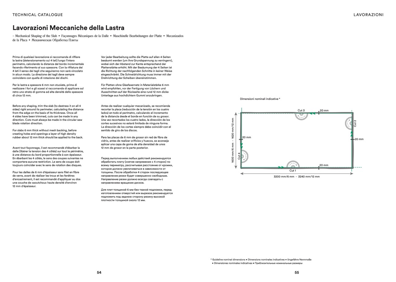 – Mechanical Shaping of the Slab • Façonnages Mécaniques de la Dalle • Maschinelle Bearbeitungen der Platte • Mecanizados