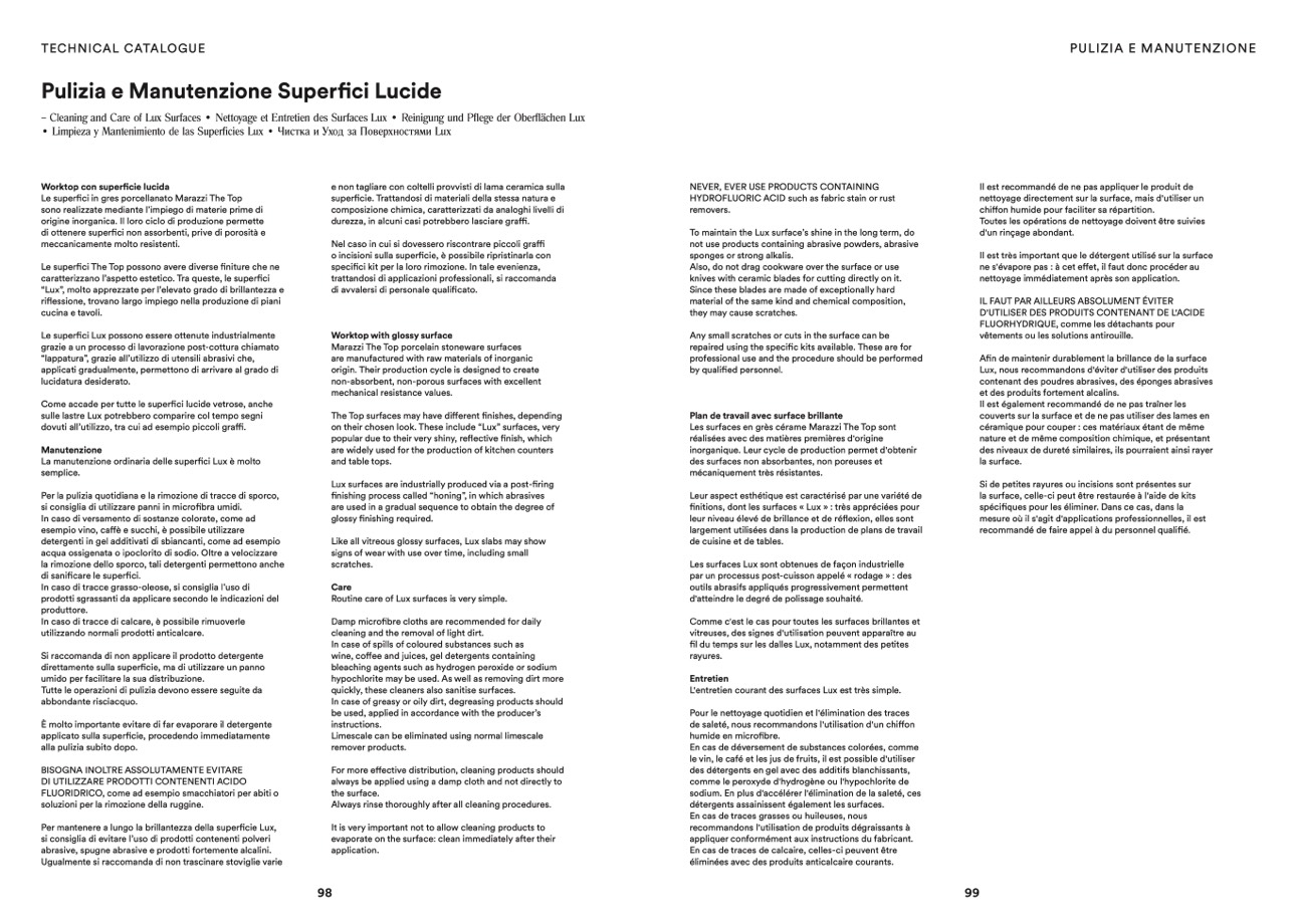 – Cleaning and Care of Lux Surfaces • Nettoyage et Entretien des Surfaces Lux • Reinigung und Pflege der Oberflächen Lux