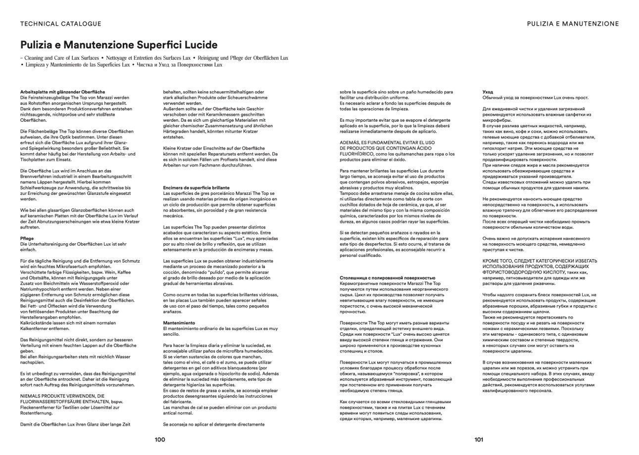• Limpieza y Mantenimiento de las Superficies Lux • Чистка и Уход за Поверхностями Lux