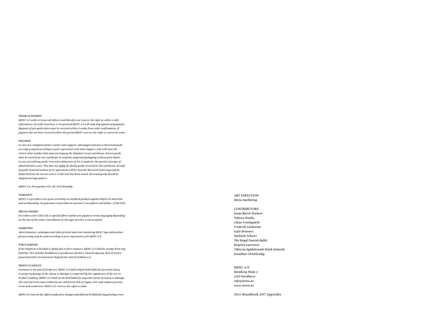 MENU A/S reserves the right to make price changes and shall not be liable for any printing errors.