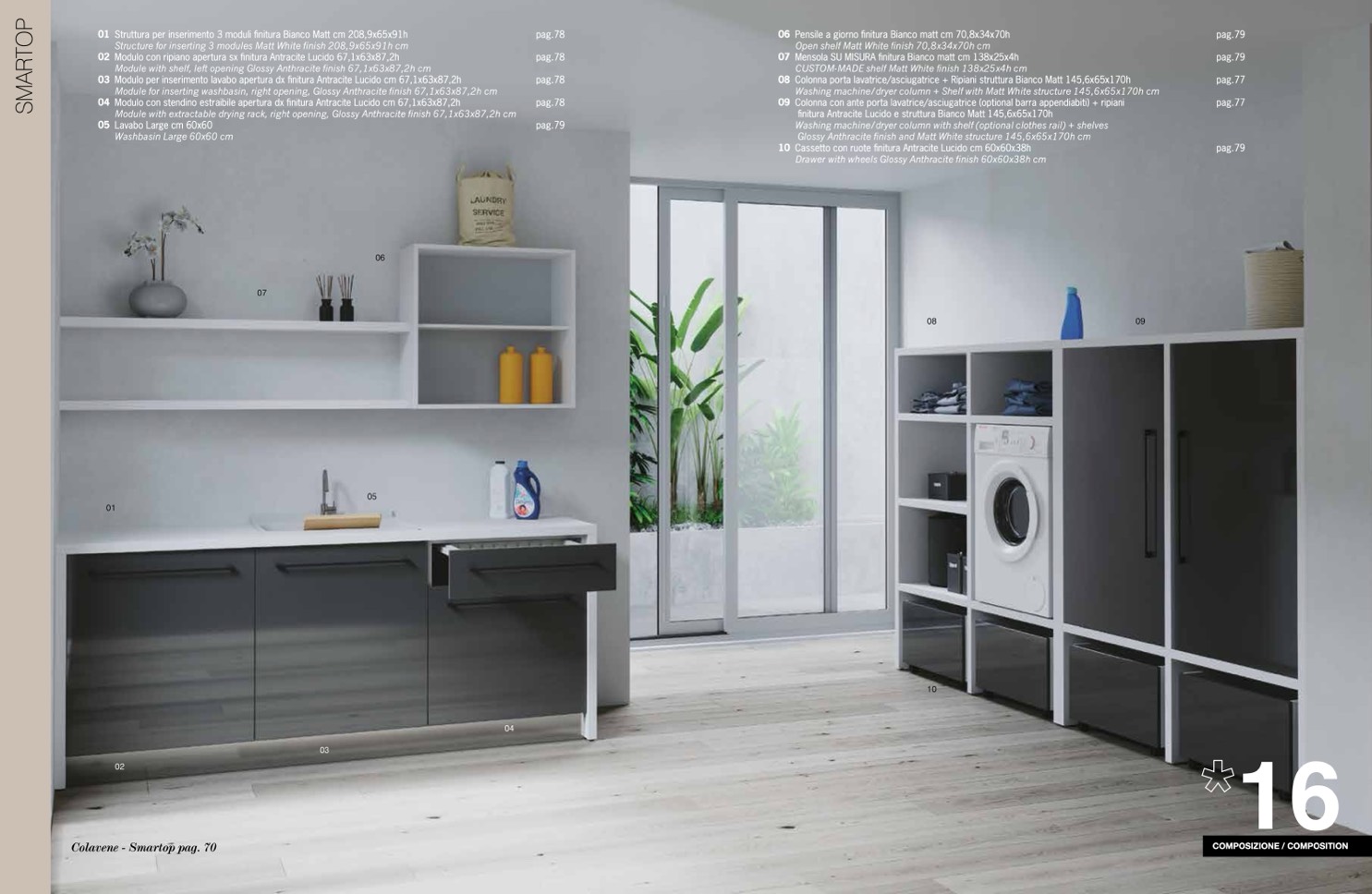 04 Modulo con stendino estraibile apertura dx finitura Antracite Lucido cm 67,1x63x87,2h