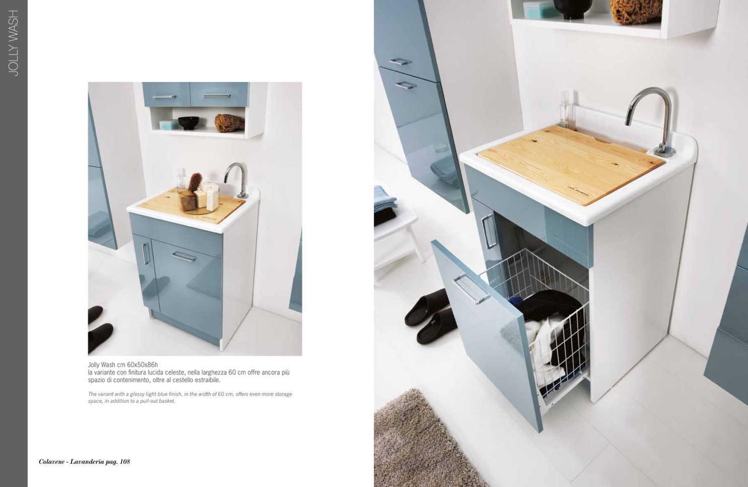 la variante con finitura lucida celeste, nella larghezza 60 cm offre ancora più