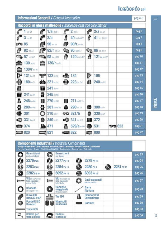 Flange - Guarnizioni - Viti - Raccordi acciaio ISO/ANSI - Manicotti acciaio - Barilotti - Tronchetti