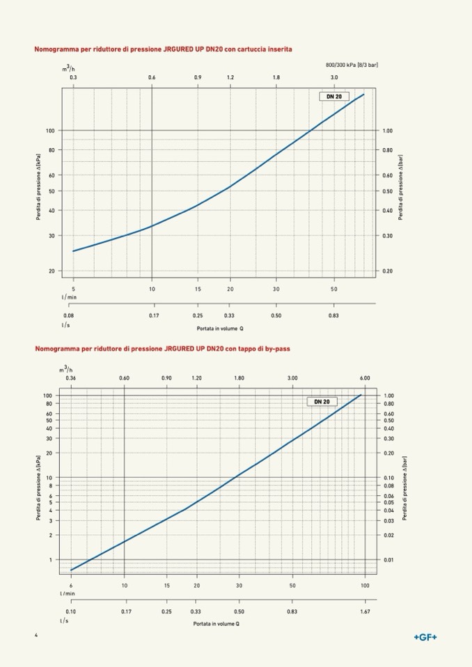 Nomogramma per riduttore di pressione JRGURED UP DN20 con tappo di by-pass