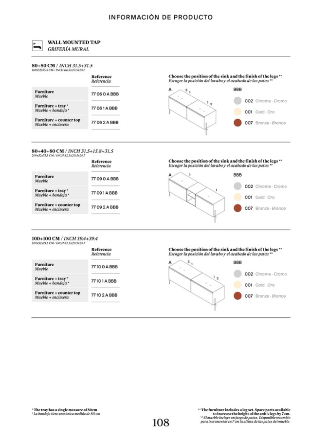 Escoger la posición del lavabo y el acabado de las patas **