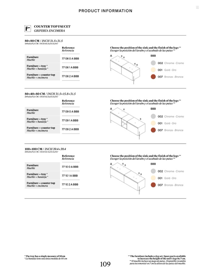 Escoger la posición del lavabo y el acabado de las patas **
