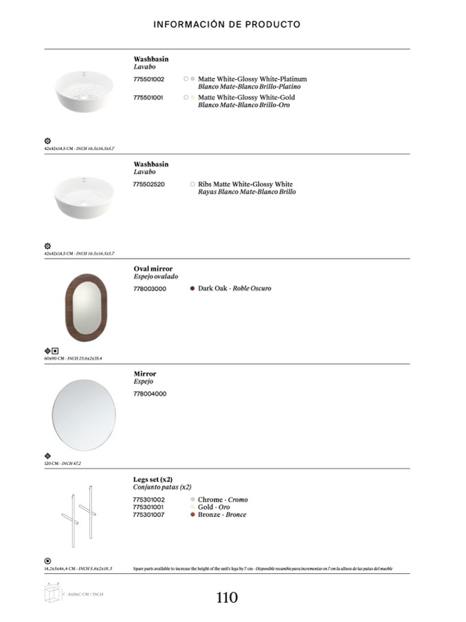 Spare parts available to increase the height of the unit’s legs by 7 cm · Disponible recambio para incrementar en 7 cm la altura de las patas del mueble
