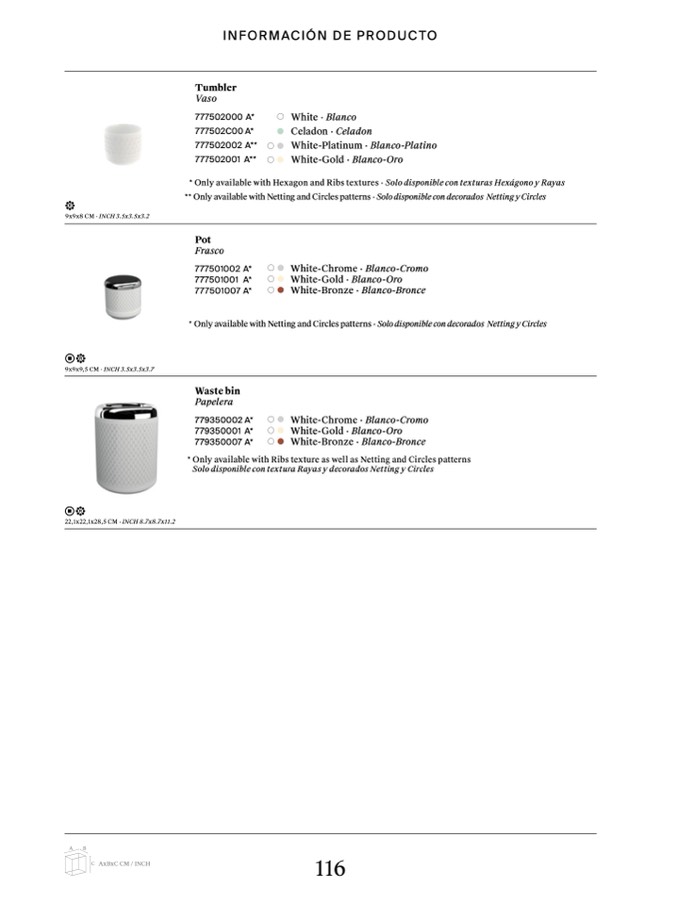 ** Only available with Netting and Circles patterns · Solo disponible con decorados Netting y Circles