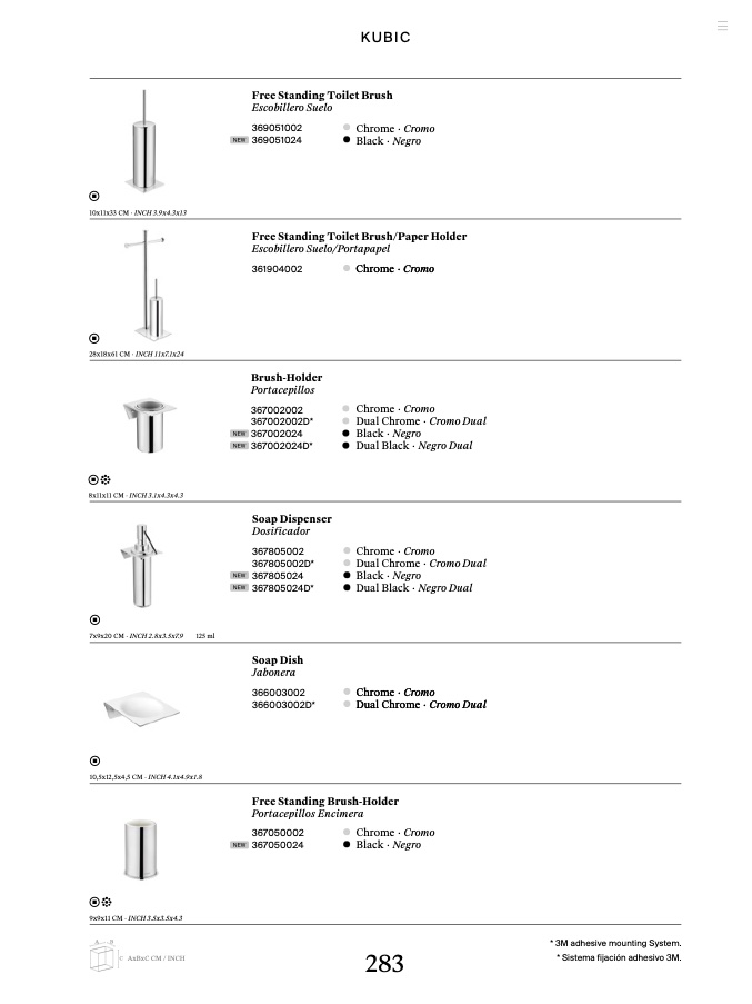 * Sistema fijación adhesivo 3M.