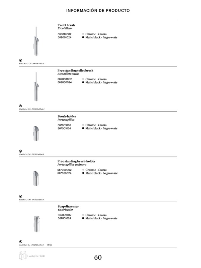 6.3x8,2x17,6 CM · INCH 2.5x3.2x6.9