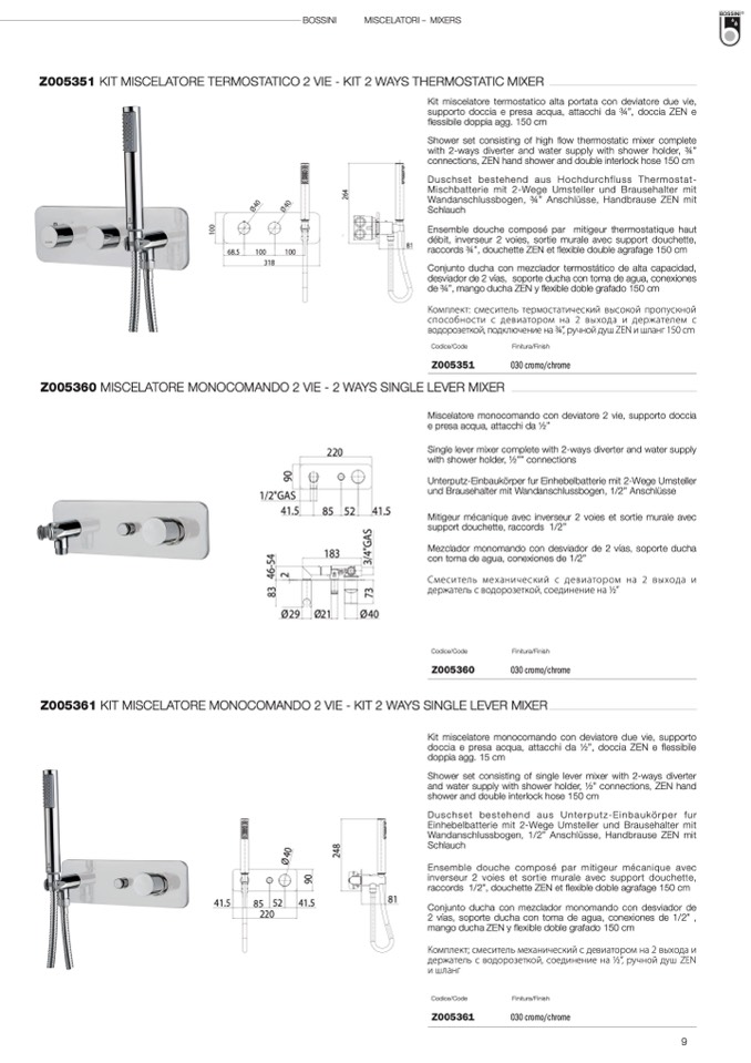 Z005351 KIT MISCELATORE TERMOSTATICO 2 VIE - KIT 2 WAYS THERMOSTATIC MIXER