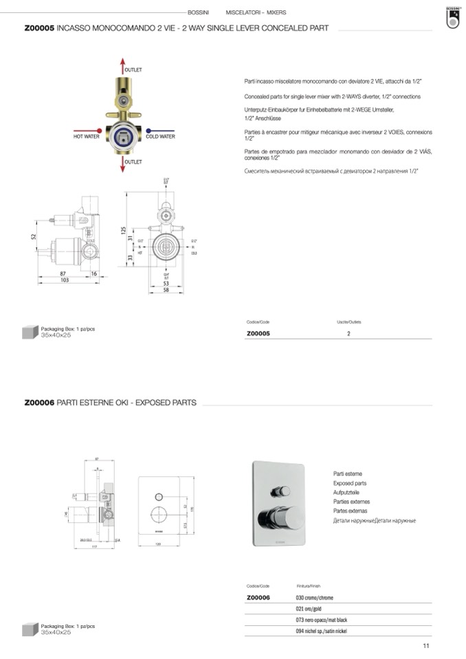 Z00005 INCASSO MONOCOMANDO 2 VIE - 2 WAY SINGLE LEVER CONCEALED PART