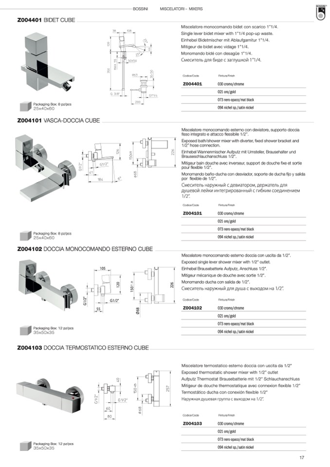 Z004102 DOCCIA MONOCOMANDO ESTERNO CUBE
