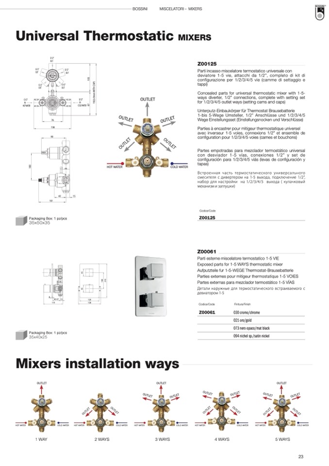 ways diverter, 1/2” connections, complete with setting set