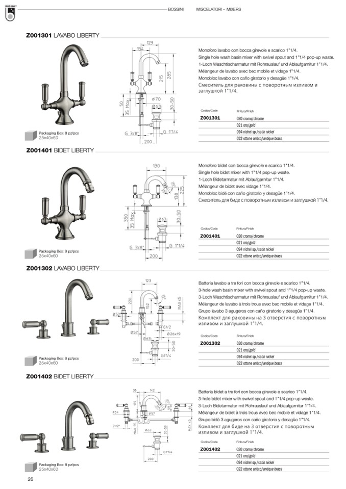 3-hole wash basin mixer with swivel spout and 1”1/4 pop-up waste.