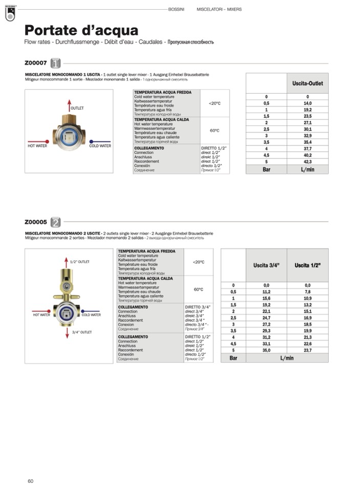 MISCELATORE MONOCOMANDO 2 USCITE - 2 outlets single lever mixer - 2 Ausgänge Einhebel Brausebatterie