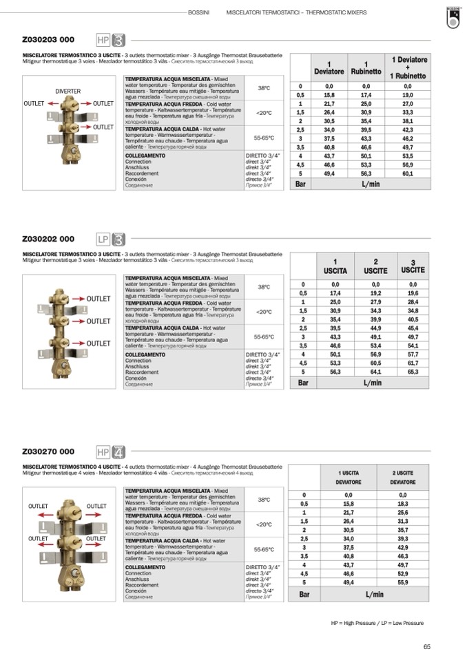 MISCELATORE TERMOSTATICO 3 USCITE - 3 outlets thermostatic mixer - 3 Ausgänge Thermostat Brausebatterie