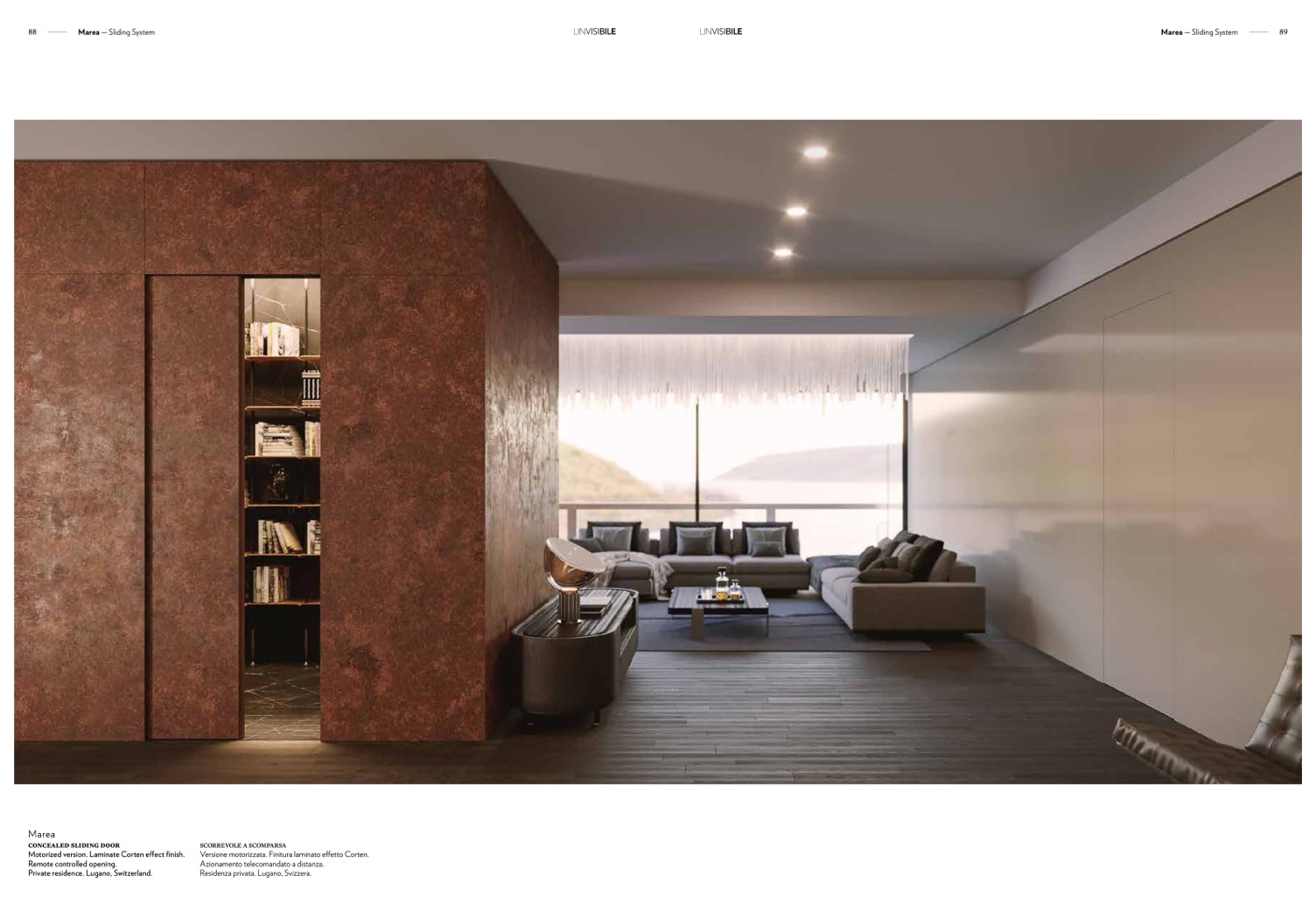 Motorized version. Laminate Corten effect finish.
