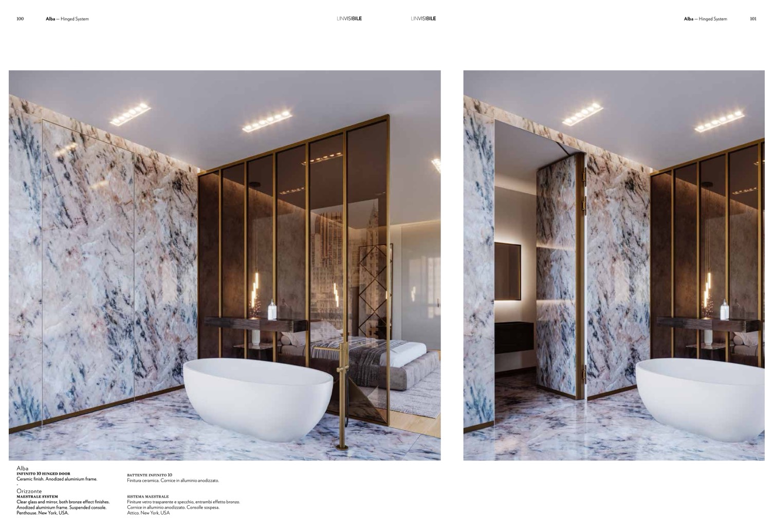 Cornice in alluminio anodizzato. Consolle sospesa.