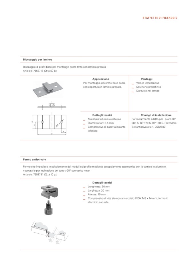 Bloccaggio di profili base per montaggio sopra-tetto con lamiera grecata