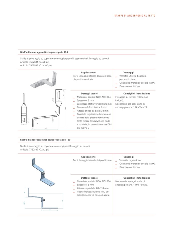 Staffa di ancoraggio per coppi regolabile - 20