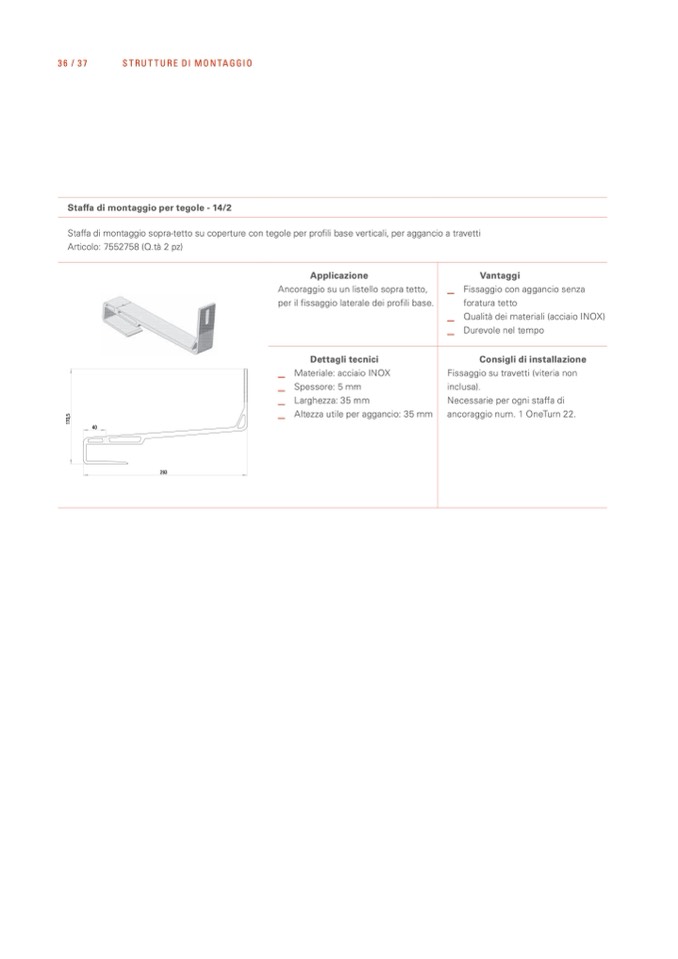 Staffa di montaggio per tegole - 14/2