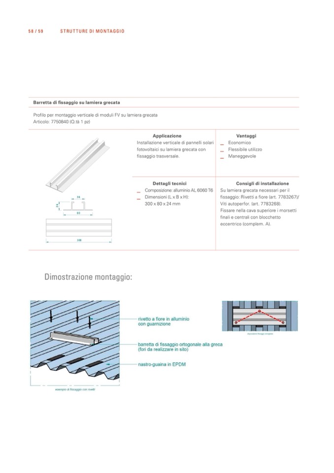 Profilo per montaggio verticale di moduli FV su lamiera grecata