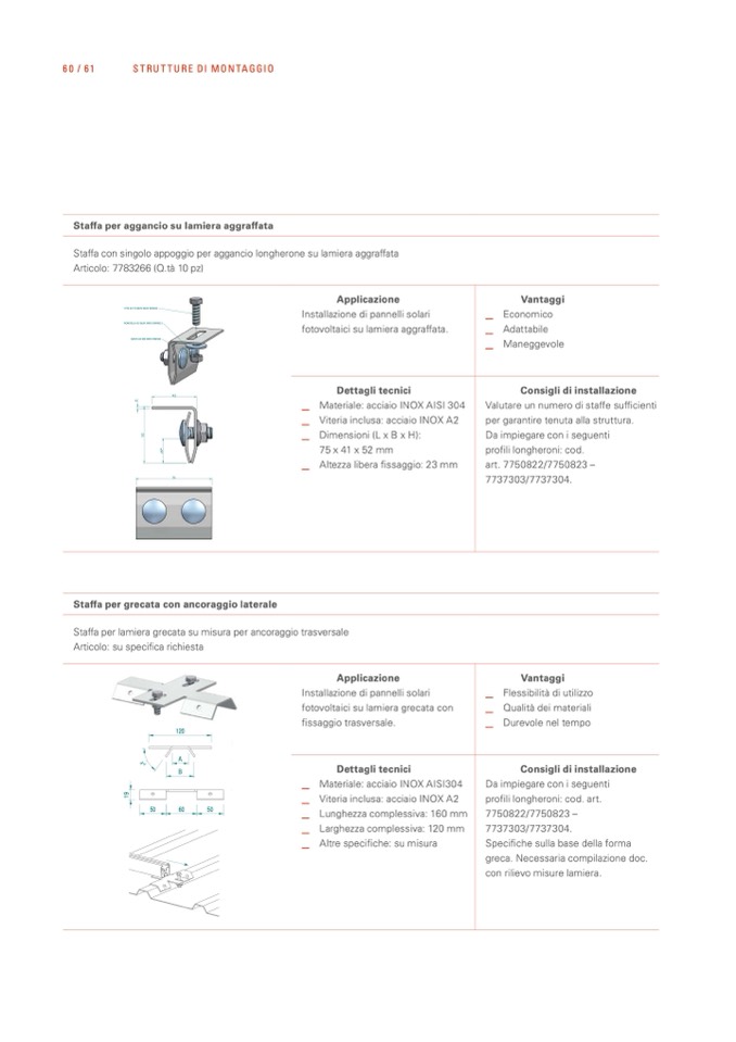 Staffa con singolo appoggio per aggancio longherone su lamiera aggraffata