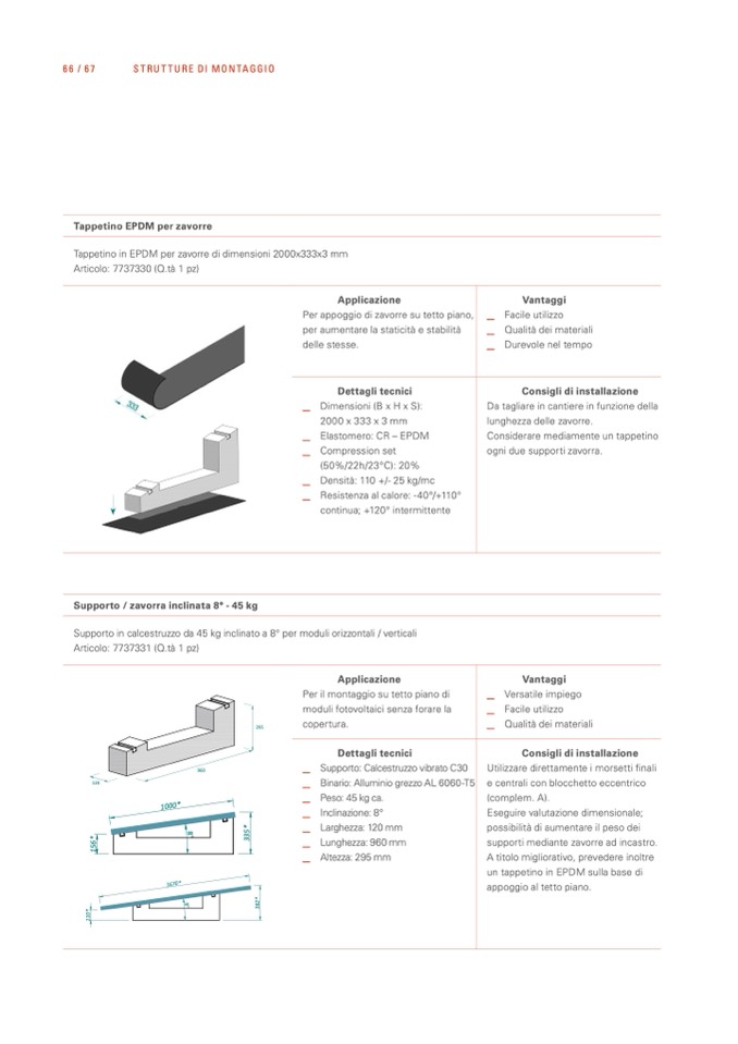 Supporto in calcestruzzo da 45 kg inclinato a 8° per moduli orizzontali / verticali