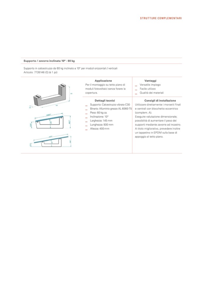 Supporto / zavorra inclinata 10° - 60 kg