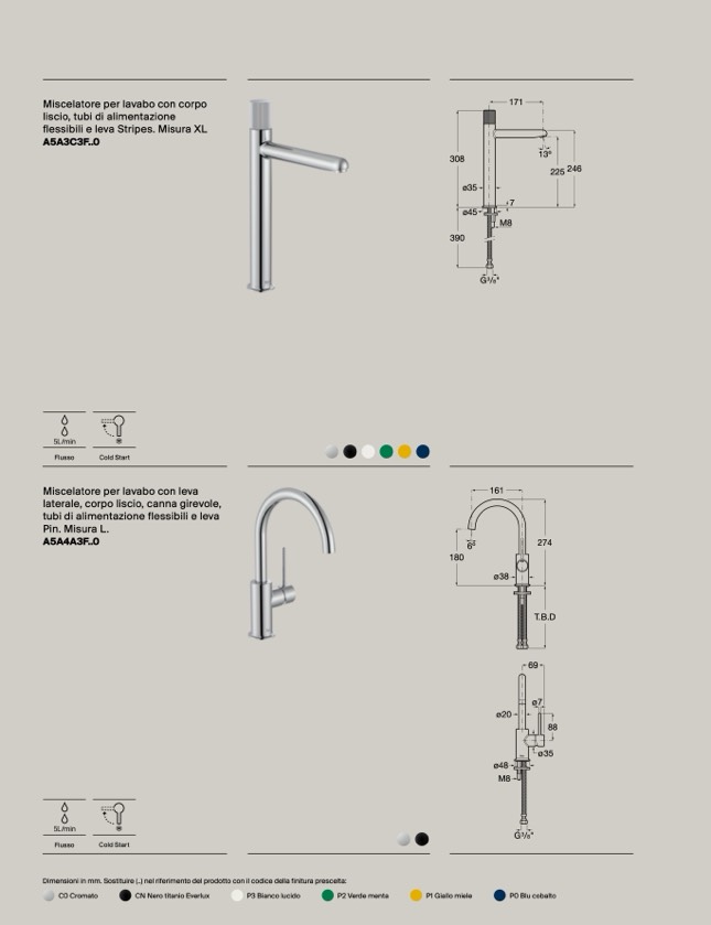 Dimensioni in mm. Sostituire (..) nel riferimento del prodotto con il codice della finitura prescelta: