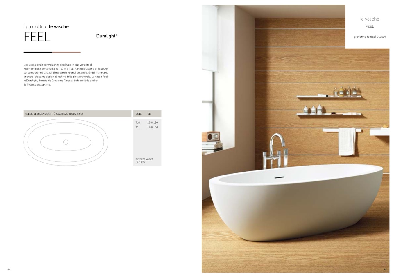 unendo l’elegante design al feeling della pietra naturale. La vasca Feel