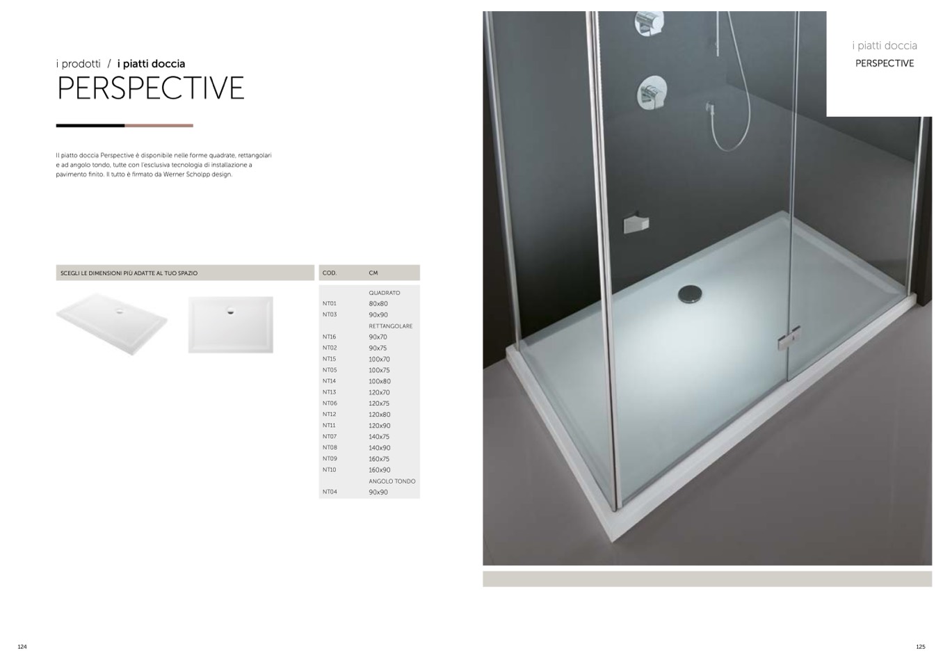 Il piatto doccia Perspective è disponibile nelle forme quadrate, rettangolari
