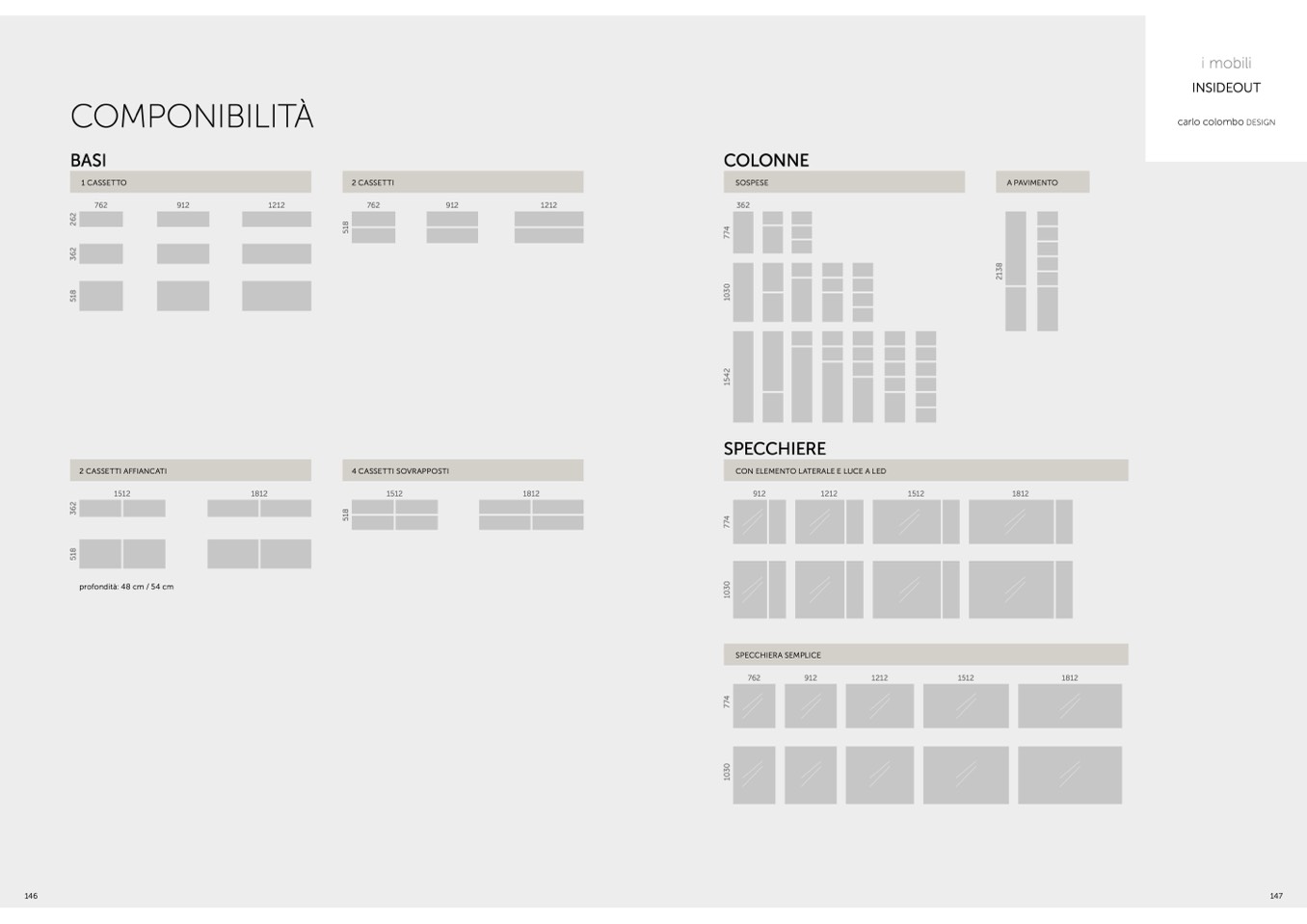 profondità: 48 cm / 54 cm