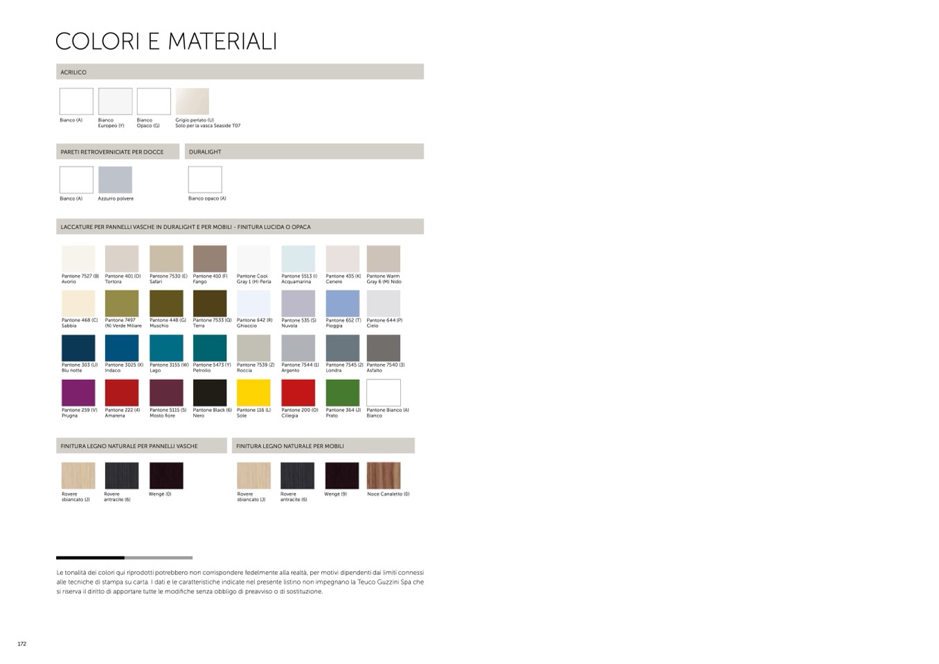 alle tecniche di stampa su carta. I dati e le caratteristiche indicate nel presente listino non impegnano la Teuco Guzzini Spa che