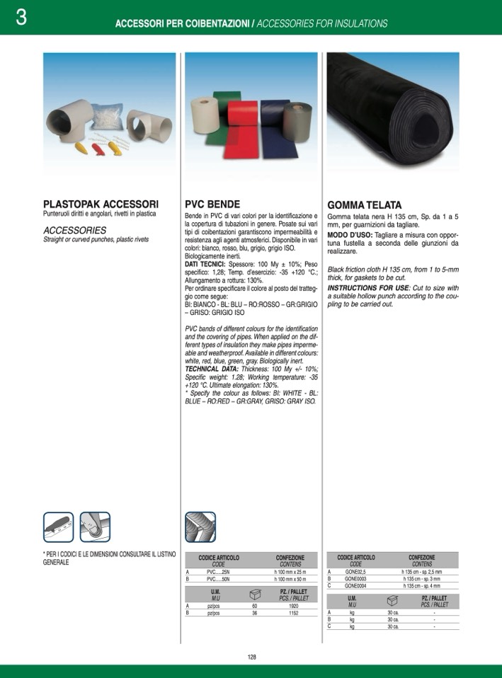 specifico: 1,28; Temp. d’esercizio: -35 +120 °C.;