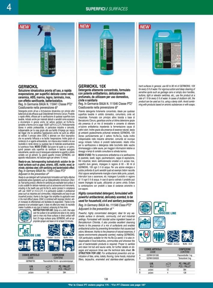 hard surfaces in general, use 60 to 90 ml of GERMOKIL 10X