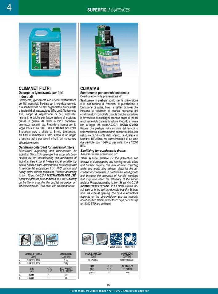 Detergente igienizzante per filtri