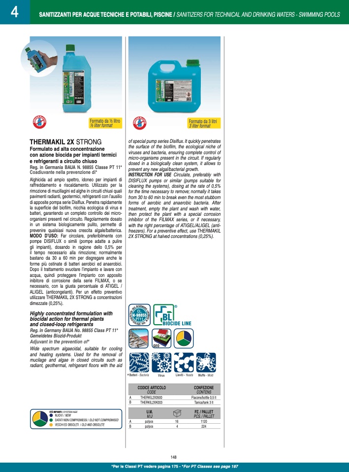 SANITIZZANTI PER ACQUE TECNICHE E POTABILI, PISCINE / SANITIZERS FOR TECHNICAL AND DRINKING WATERS - SWIMMING POOLS
