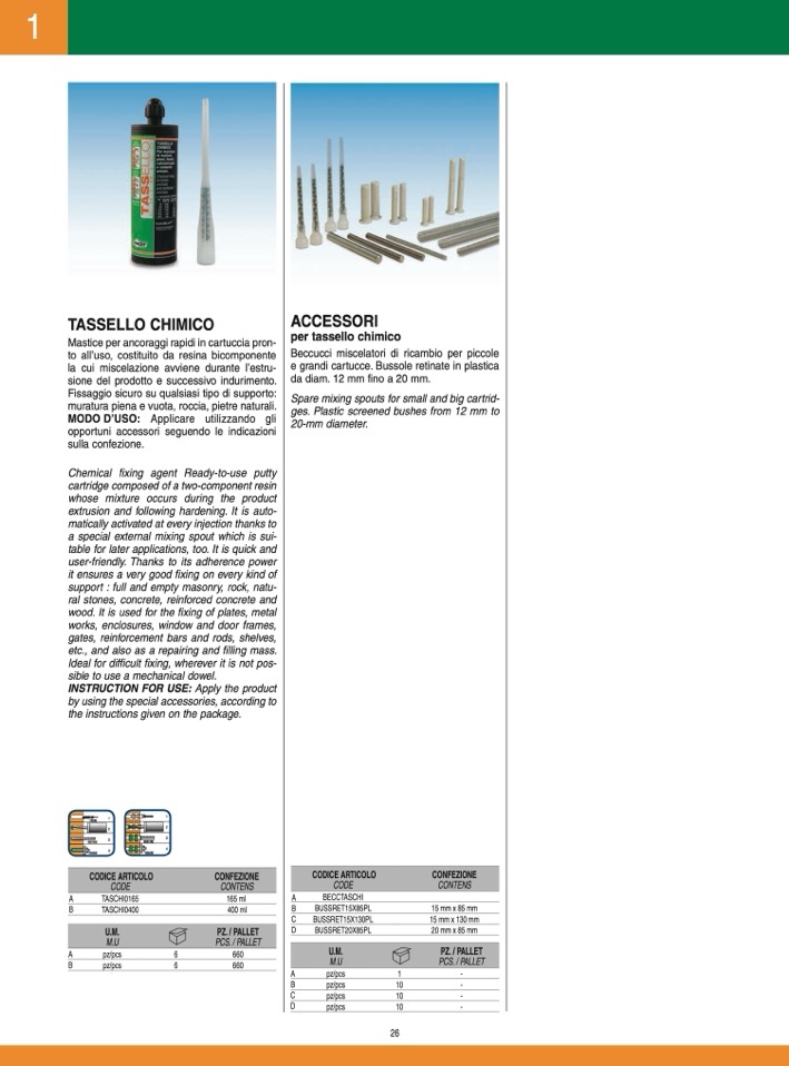 Mastice per ancoraggi rapidi in cartuccia pron-