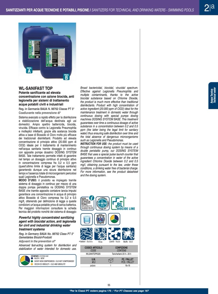 SANITIZZANTI PER ACQUE TECNICHE E POTABILI, PISCINE / SANITIZERS FOR TECHNICAL AND DRINKING WATERS - SWIMMING POOLS