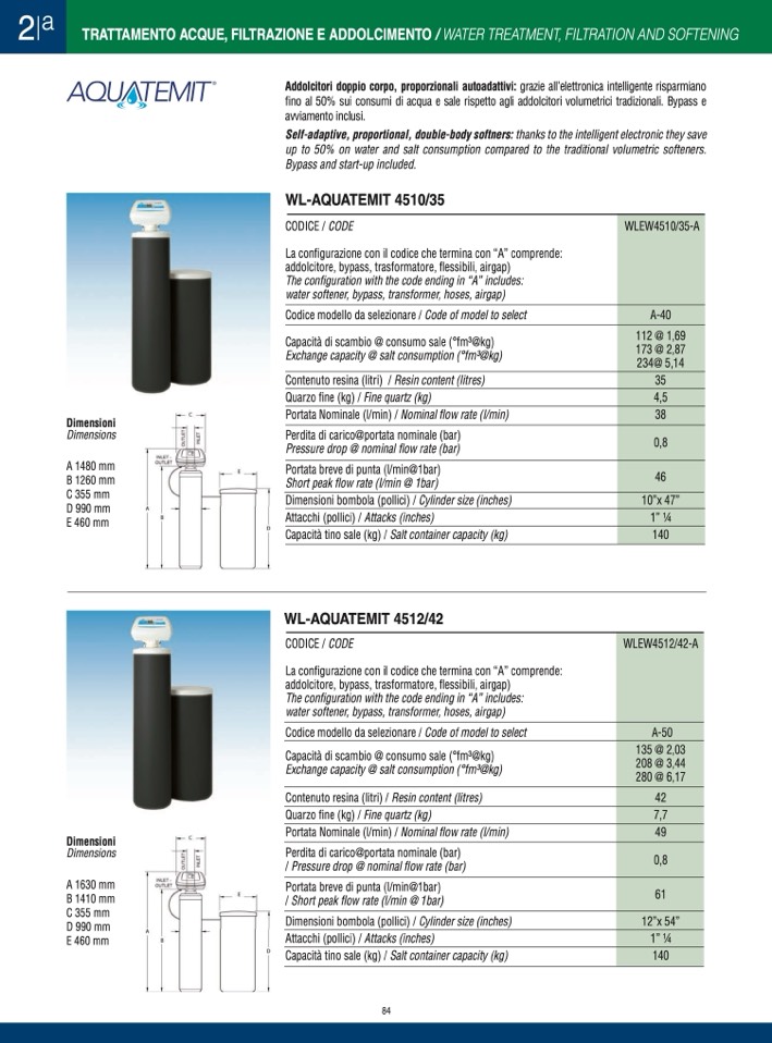 up to 50% on water and salt consumption compared to the traditional volumetric softeners.