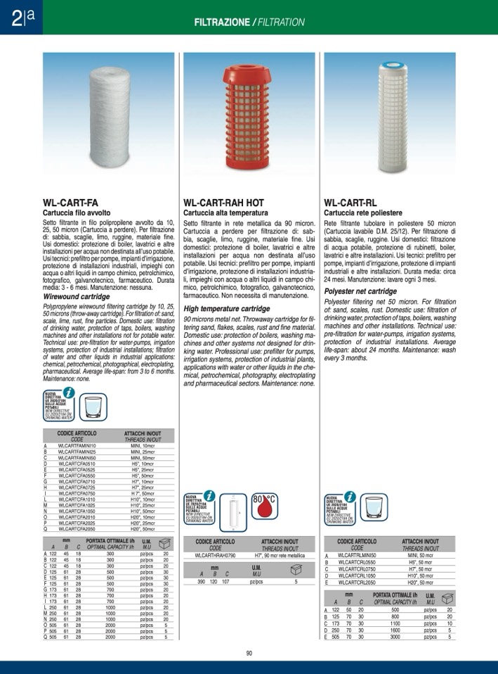 25, 50 micron (Cartuccia a perdere). Per filtrazione