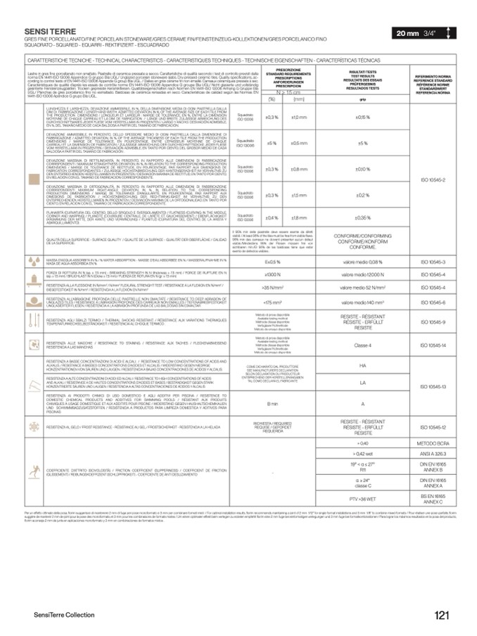 norma EN 14411-ISO 13006 Appendice G gruppo BIa UGL/ Unglazed porcelain stoneware slabs. Dry-pressed ceramic tiles. Quality specifications, ac-