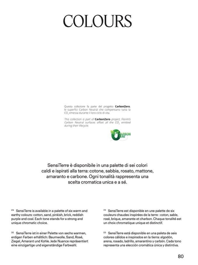 SensiTerre è disponibile in una palette di sei colori