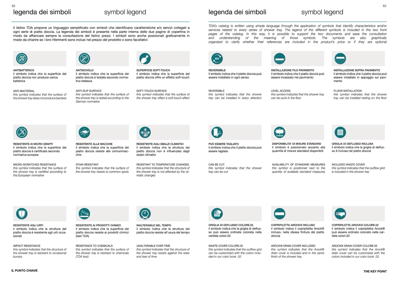 ogni serie di piatto doccia. La legenda dei simboli