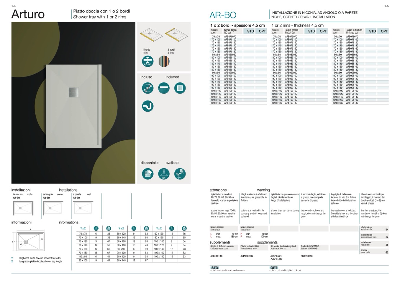 Piatto doccia con 1 o 2 bordi