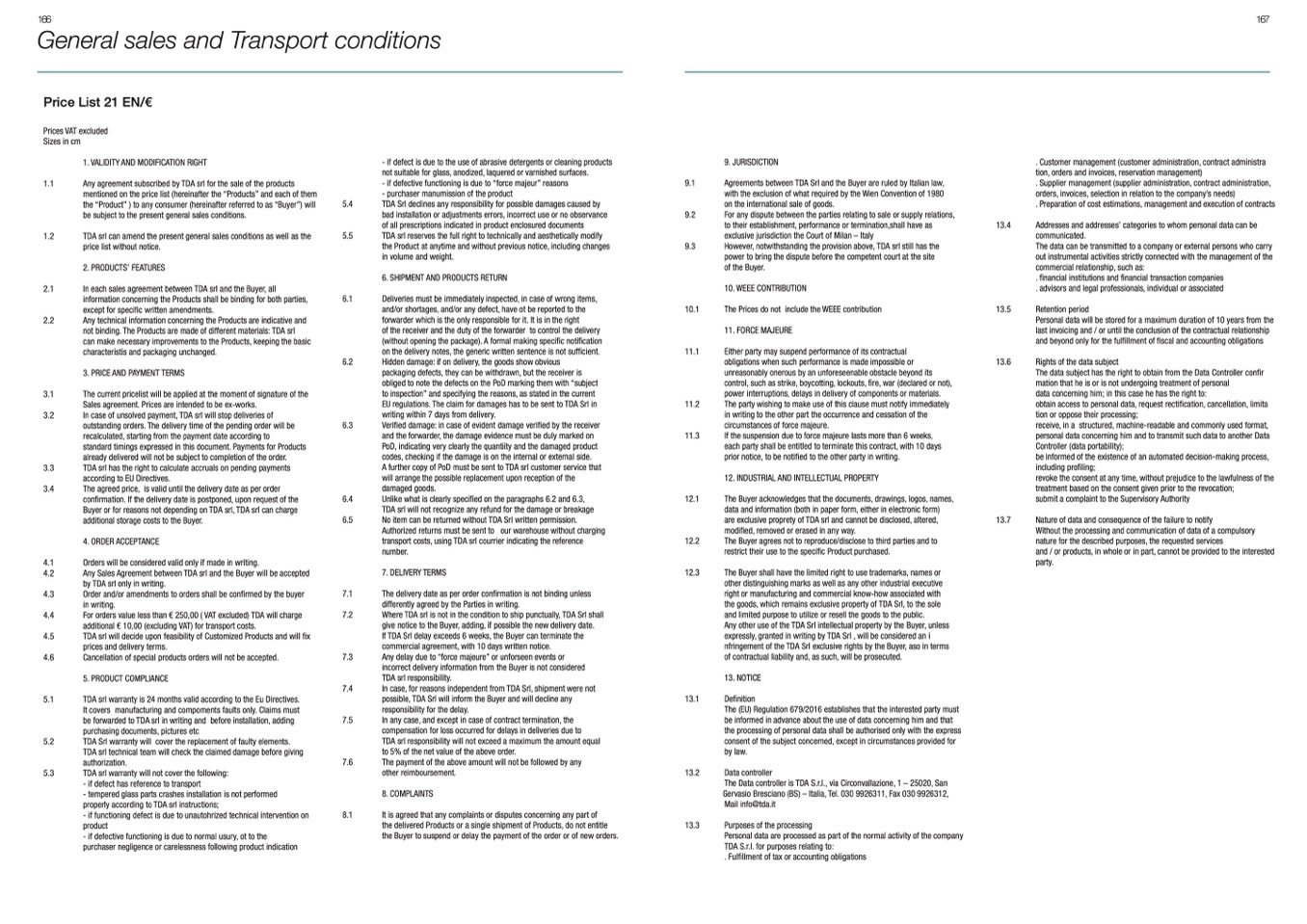 TDA srl can amend the present general sales conditions as well as the